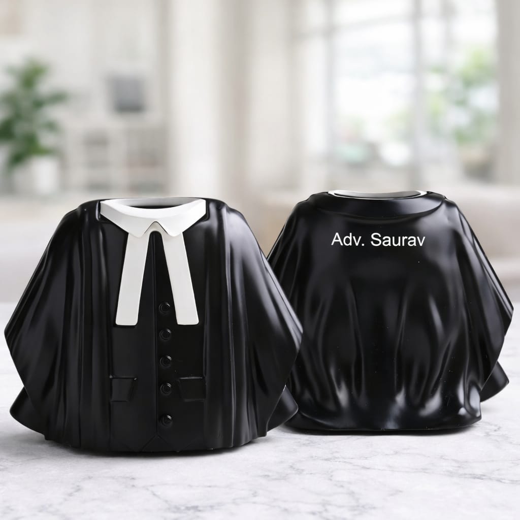 This premium ceramic pen stand is designed in the shape of a judge’s coat, giving a professional and elegant look to any desk. With a personalized name print, it makes a perfect desk accessory for advocates, lawyers, and legal professionals. Ideal for office use, chambers, and thoughtful gifting on special occasions.
