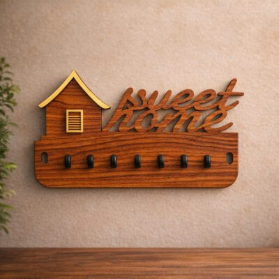 Sweet Home Wooden Key Holder | Wall Mounted Decorative Key Organizer